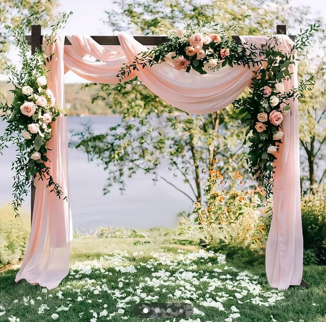 Arche en bois (habillage tissus et fleurs de soie et feuillage naturel) pack Champêtre n°2